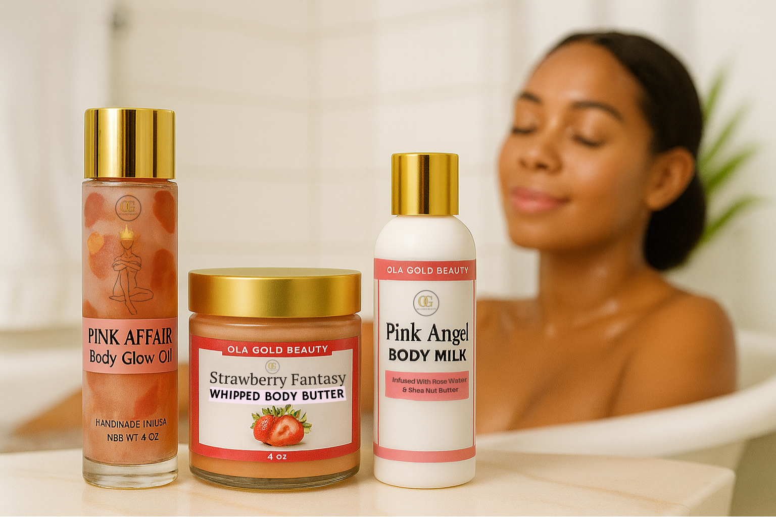 The Pink Series Ritual Kit is your full daily ritual in one sacred set. Cleanse, anoint, and seal, crafted in the spirit of ancient apothecaries and perfumed with wild strawberry and rose. Each formula weaves rose water to hydrate and soothe, shea nut oil for deep moisturization and youthful suppleness, and kokum butter to soften, restore elasticity, and encourage renewal, while slow-infused herbs, quality butters, and nourishing plant oils wrap skin in lasting silk and radiance. Vegan, herbal, vitamin-rich, natural, toxin-free; free of sulfates and phthalates.
